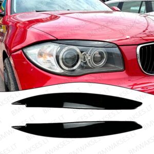 Stilingi priekinių žibintų apdailos elementai („antakiai“) BMW 1 serijai, suteikiantys automobiliui sportiškesnę ir agresyvesnę išvaizdą. Puikus pasirinkimas norint atnaujinti automobilio dizainą be sudėtingų modifikacijų.