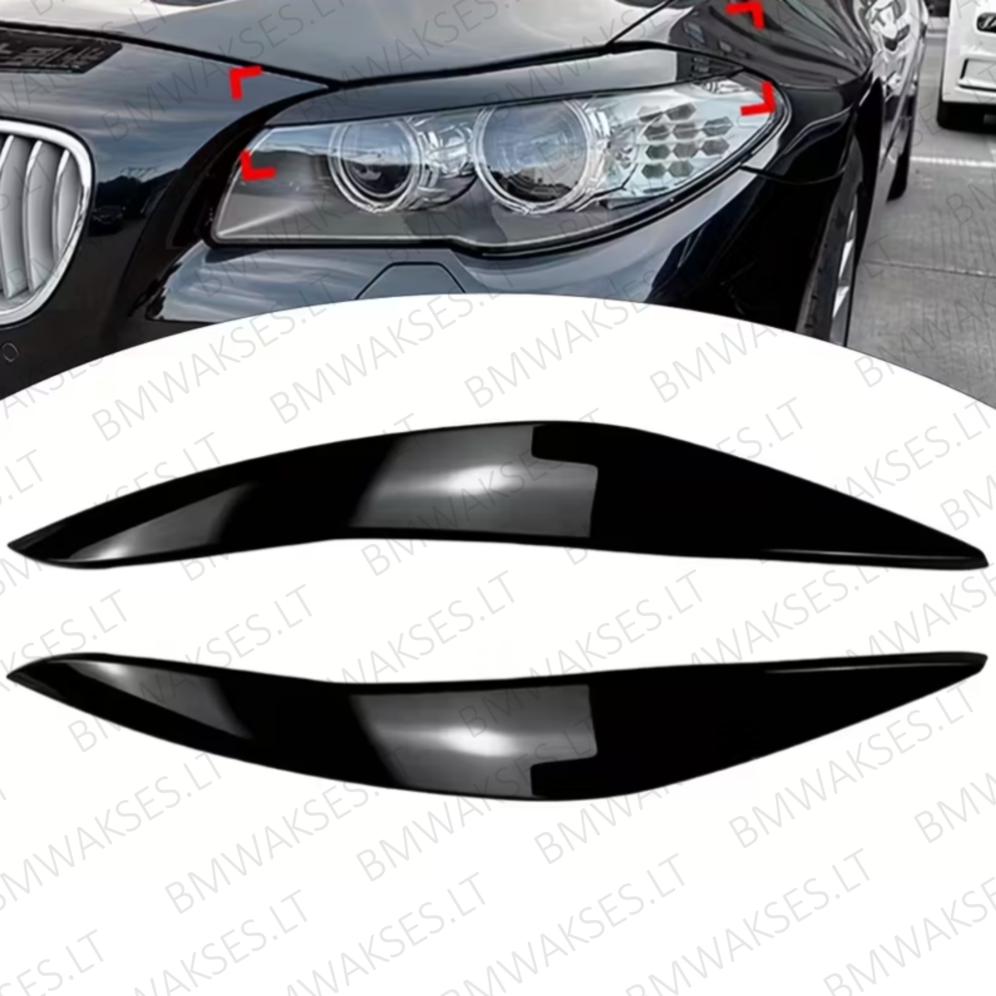 Stilingi priekinių žibintų apdailos elementai („antakiai“) BMW 5 serijos F10, F11 ir F18 modeliams, skirti pagerinti automobilio išvaizdą bei apsaugoti žibintus nuo kasdienio nusidėvėjimo. Modernus, aptakus dizainas suteikia automobiliui sportišką ir išskirtinį įvaizdį.