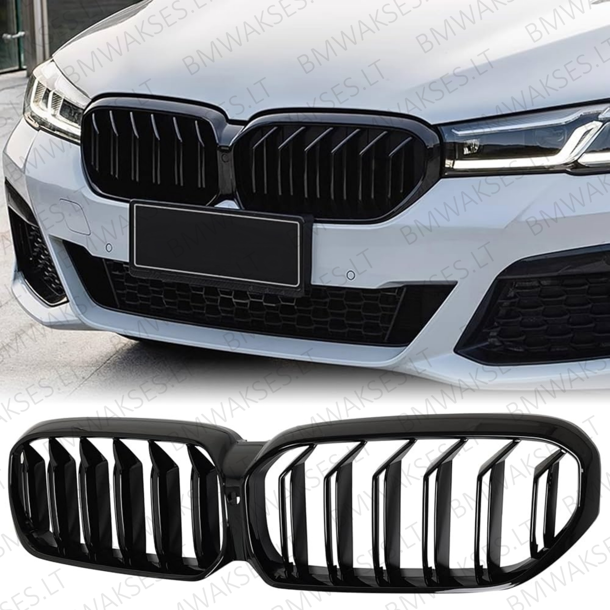 Priekinės Grotelės BMW 5 Serijai G30 G31 G38 F90 LCI (2020–2023) – Gloss Black
